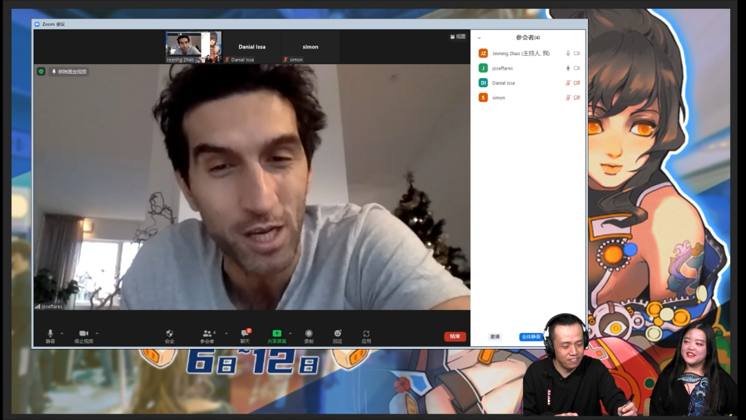 12月12日下午16点,刚刚获得TGA年度最佳游戏《双人成行》的制作人Josef Fares来到WePlay文化展的直播间进行连线互动。尽管在瑞典本地正值大清早,中国的玩家们依旧能通过连线画面感受到Josef Fares的热情,看得出他对自己的身材相当自信,开场也先是毫不吝啬的秀了肌肉(字面意思)。